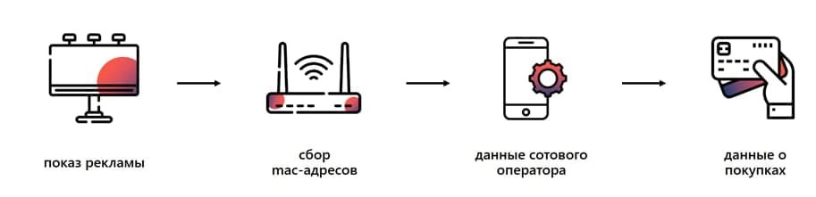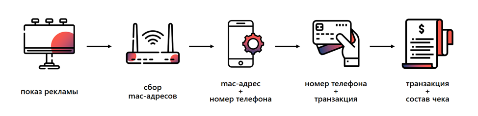 Второй этап кейса — измерение эффективности рекламной кампании в продажах. Классический Sales Lift обычно подразумевает применение деперсонализированных данных ОФД-чеков, и цепочка связей выглядит следующим образом: