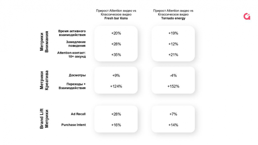 Эксперимент подтвердил: управление вниманием возможно. Форматы, учитывающие поведение пользователя и адаптирующиеся под него в реальном времени, дают измеримый эффект на уровне восприятия и запоминаемости бренда.