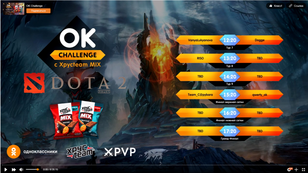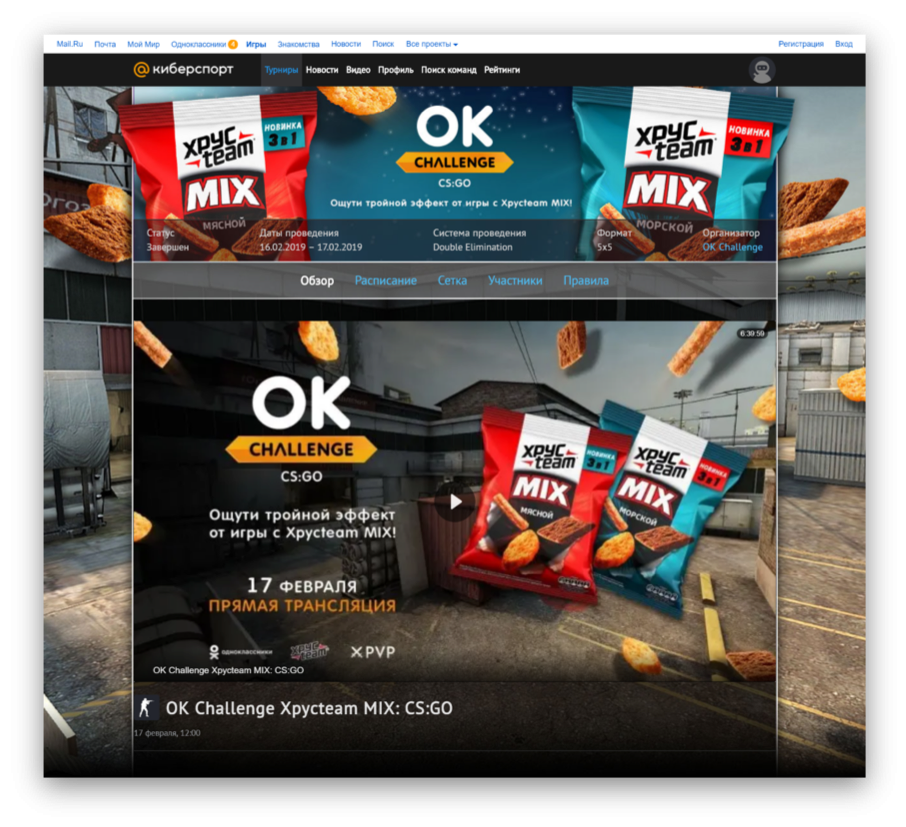 Предложенное «Одноклассниками» решение позволило бренду «Хрусteam MIX» донести информацию о турнире не только до киберспортсменов и поклонников киберспорта, но и до максимально широкой геймерской аудитории. Став издателем востребованного контента и точкой входа, покрывшей различные интересы аудитории, социальная сеть предоставила бренду «Хрусteam MIX» доступ к максимально широкой аудитории.