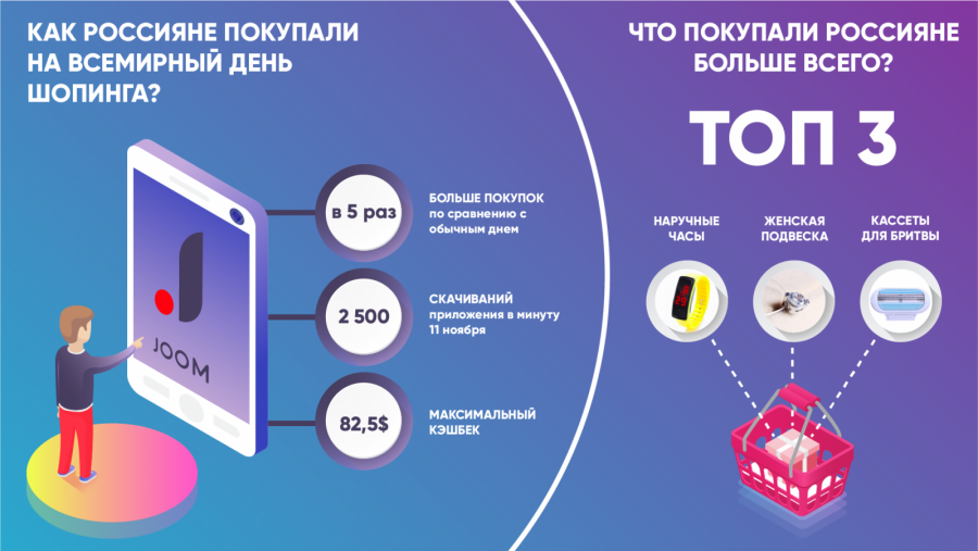 JOOM традиционно отмечает всплеск активности покупателей по случаю Всемирного дня шопинга, однако результаты кампании этого года на российском рынке оказались особо впечатляющими даже на этом фоне: 11 ноября 2018 продажи выросли в два с половиной раза по сравнению с предыдущим годом и в пять раз — по сравнению с обычным днем.