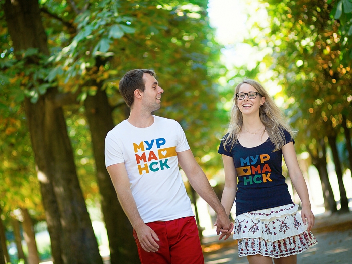 Благодаря экскурсии по городу креативная команда заметила преобладание необычного бирюзового и теплого терракотового цвета. Эти цвета легли в основу логотипа, состоящего из тесно прижатых друг к другу («плечом к плечу») букв, составляющих слово «Мурманск». Плотная кирпичная кладка, цветные контейнеры в порту; люди, стоящие плечом к плечу – это главные ассоциации, связанные с новым логотипом.