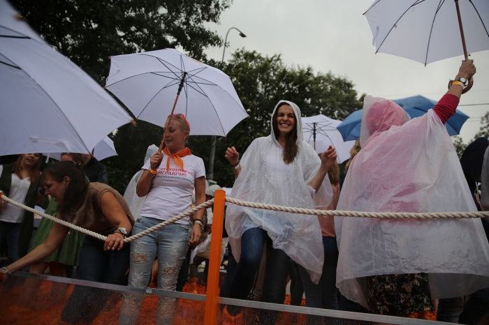 Однако случилась заминка – во время акции начался сильный ливень, из-за которого давить сок стало значительно сложнее. Но и это не остановило участников рекорда.