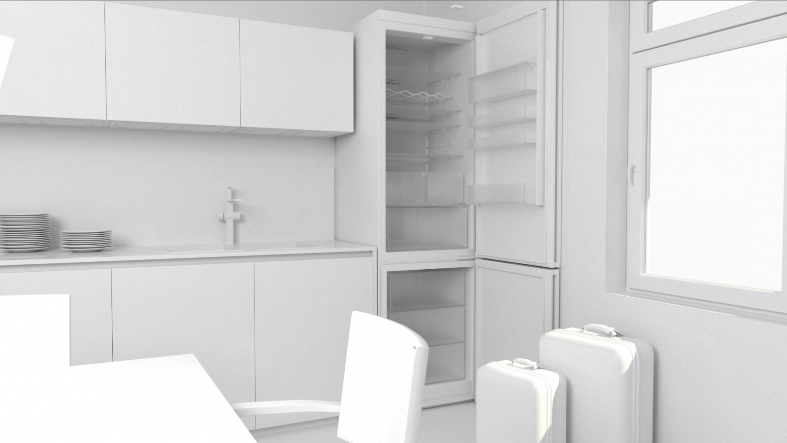 Параллельно художники агентства занимались моделированием кухни и главного героя кампании — холодильника VitaFresh.
