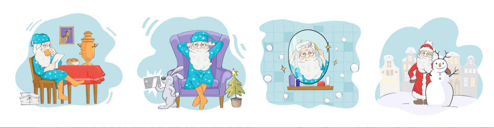 Наши дизайнеры создали серию запоминающихся иллюстраций: Дед Мороз в пижаме, заяц с кредиткой, снеговик-помощник. Стилистика выдержана в корпоративных цветах РНКБ.