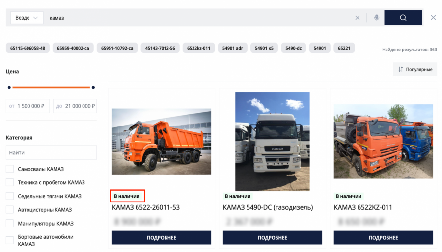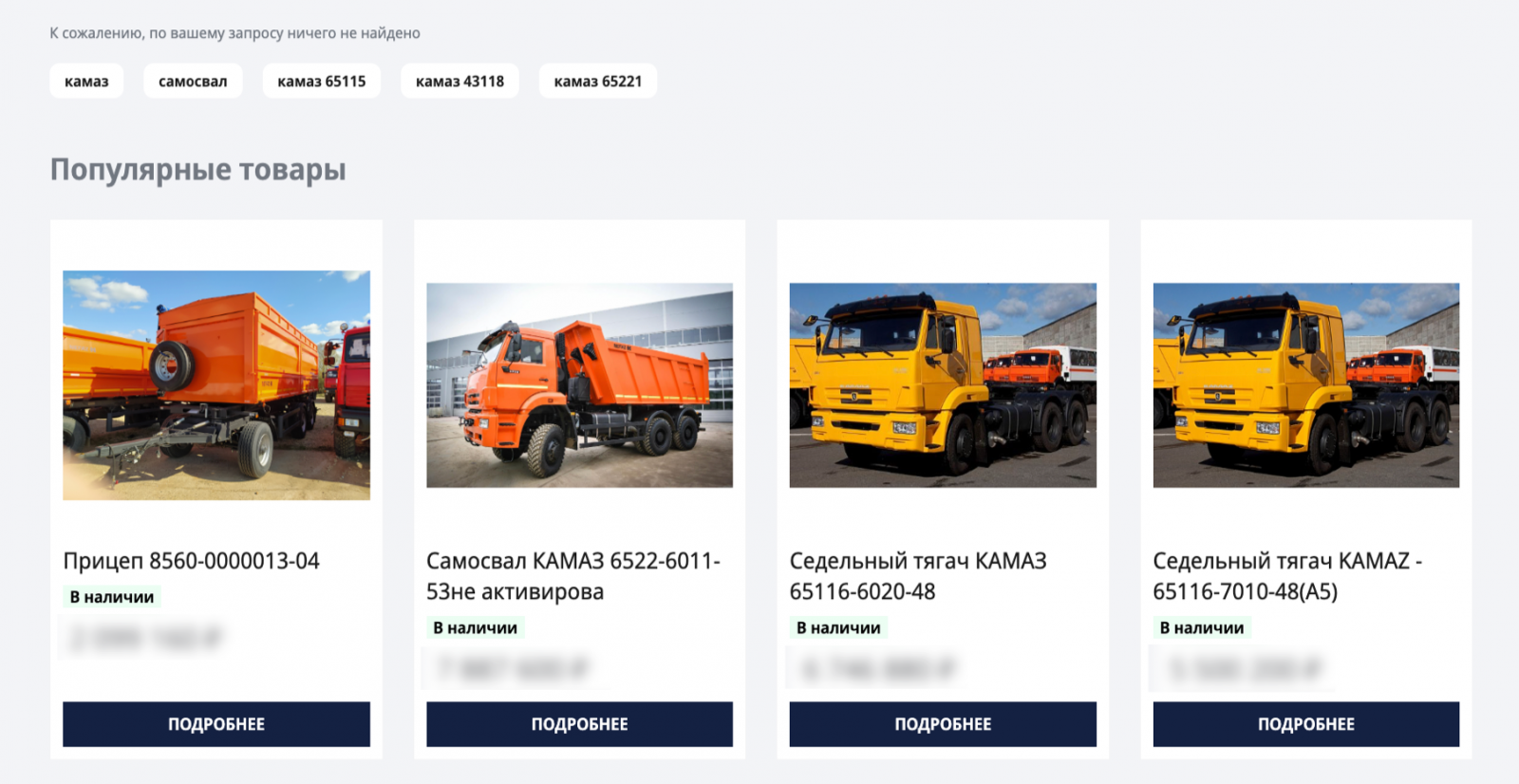 Маркетплейс грузовой техники kamaz.market уже работал с поисковым решением SearchBooster для поиска по сайту. Клиент поставил несколько задач: