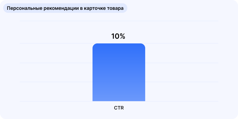 - CTR персональных рекомендаций в карточке товара — 10%.