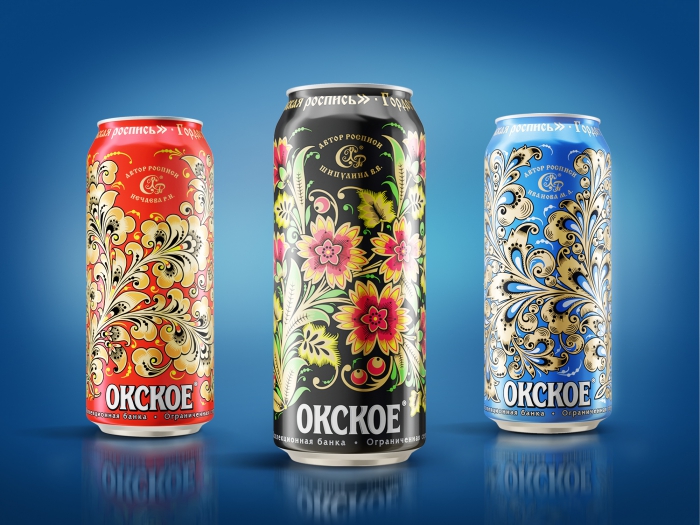 Легендарный русский промысел — хохломская роспись — возник в XVII веке в окрестностях Нижнего Новгорода. «Нам представилась уникальная возможность разработать коллекционную серию совместно с хохломскими мастерами, создающими настоящие произведения искусства! Каждый дизайн этой серии был придуман мастерами ЗАО «Хохломская Роспись» специально для бренда «Окское», — отмечает бренд-команда.
