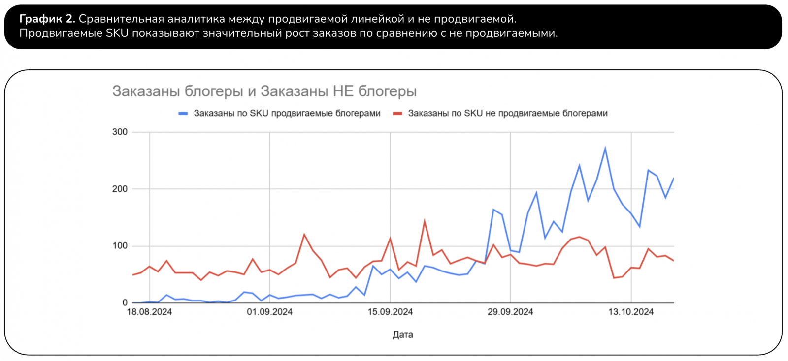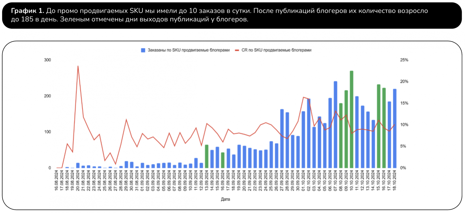 - Этап 2 (с 8 по 17 октября): масштабирование с привлечением еще 12 блогеров.