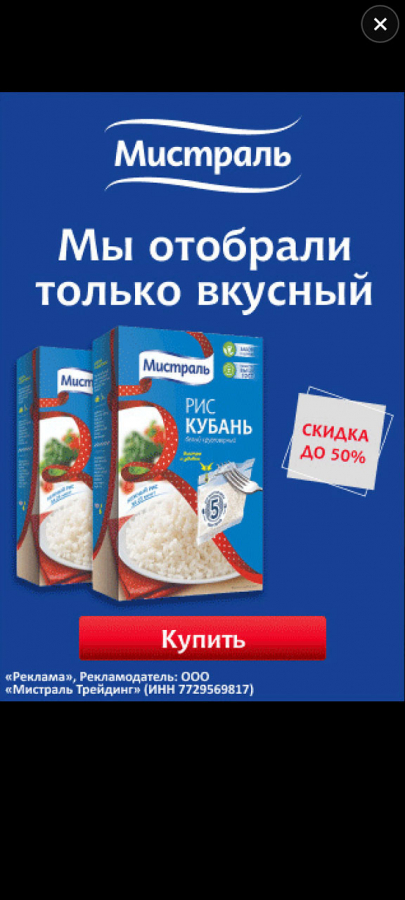 В размещении рекламировалось три продукта: варочные пакетики «Рис Кубань», «Рис Жасмин» и «Ядрица Гречневая».