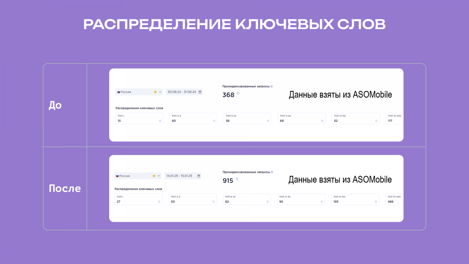 - Систематическое обновление ключевых слов в описании и заголовках улучшает ASO.