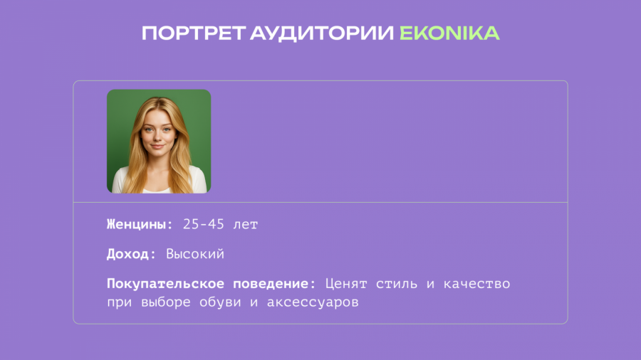 EKONIKA — один из ведущих брендов женской обуви и аксессуаров на российском фешен-рынке. С 2020 года компания развивает собственное мобильное приложение, которое работает как полноценный онлайн-магазин, обрабатывая тысячи заказов ежемесячно. Приложение предлагает полный ассортимент бренда и является важным каналом продаж.