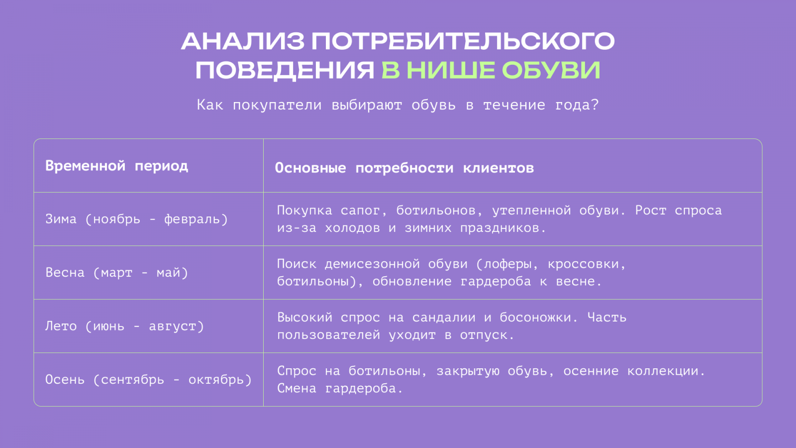 Как покупатели выбирают обувь в течение года?
