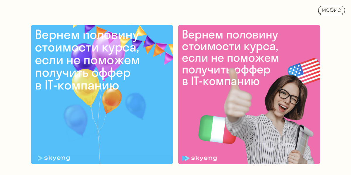 - пакеты креативов для лучших курсов клиента ИТ и изучение английского языка.