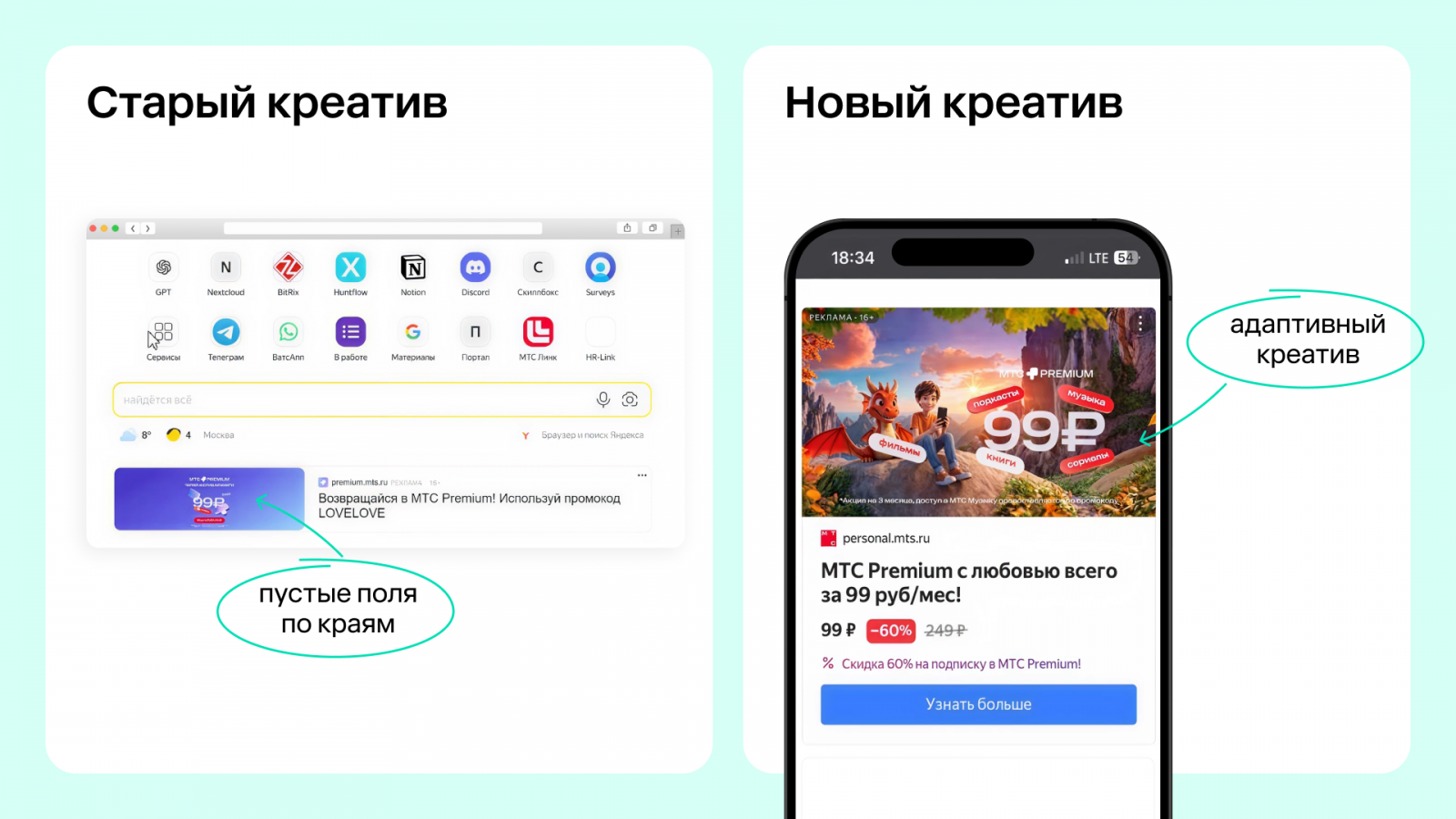 Вместе с МТС Premium мы реализовали масштабную кампанию, которая показала, как работает сочетание точной аналитики, экспериментов и автоматизации. С фокусом на реальной ценности для пользователя мы протестировали десятки гипотез, внедрили ИИ-креативы и выстроили персонализированную воронку. В итоге удалось не просто привлечь аудиторию, а сформировать устойчивый интерес к продукту.