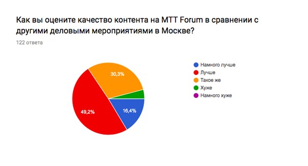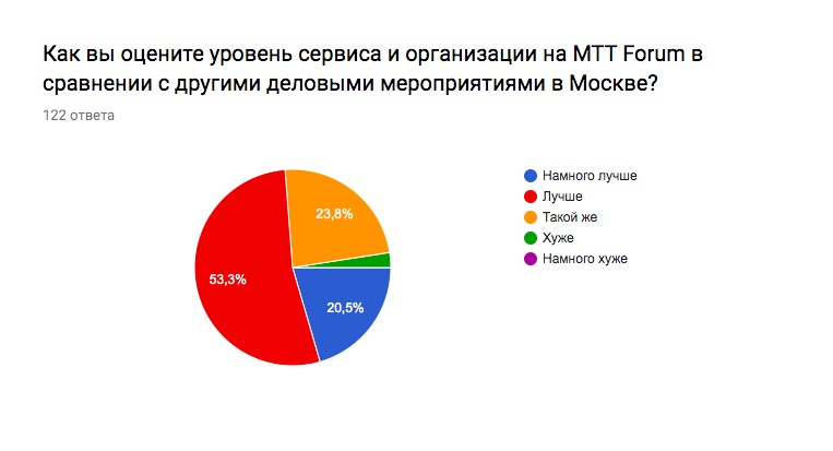 На каждом мероприятии мы проводим опрос участников, чтобы оценить качество нашей работы. Результаты по итогам опроса гостей MTT Forum:
