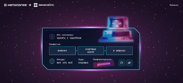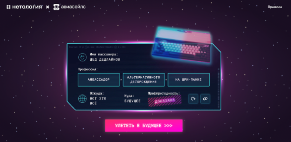 Кроме того, мы хотели усилить репутацию Нетологии как современной образовательной платформы с креативными нестандартными коммуникациями в EdTech и яркими партнерскими проектами. Кейс с Авиасейлс отлично работал на реализацию этих целей.