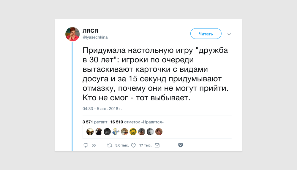 Потенциальный автор такого поста — моторчик, который хочет увидеться с друзьями. Моторчик вкладывает в дружбу всего себя — организует встречу, собирает пожелания и заказывает еду, придумывает, чем занять гостей. Убирает и моет посуду, когда гости уходят.