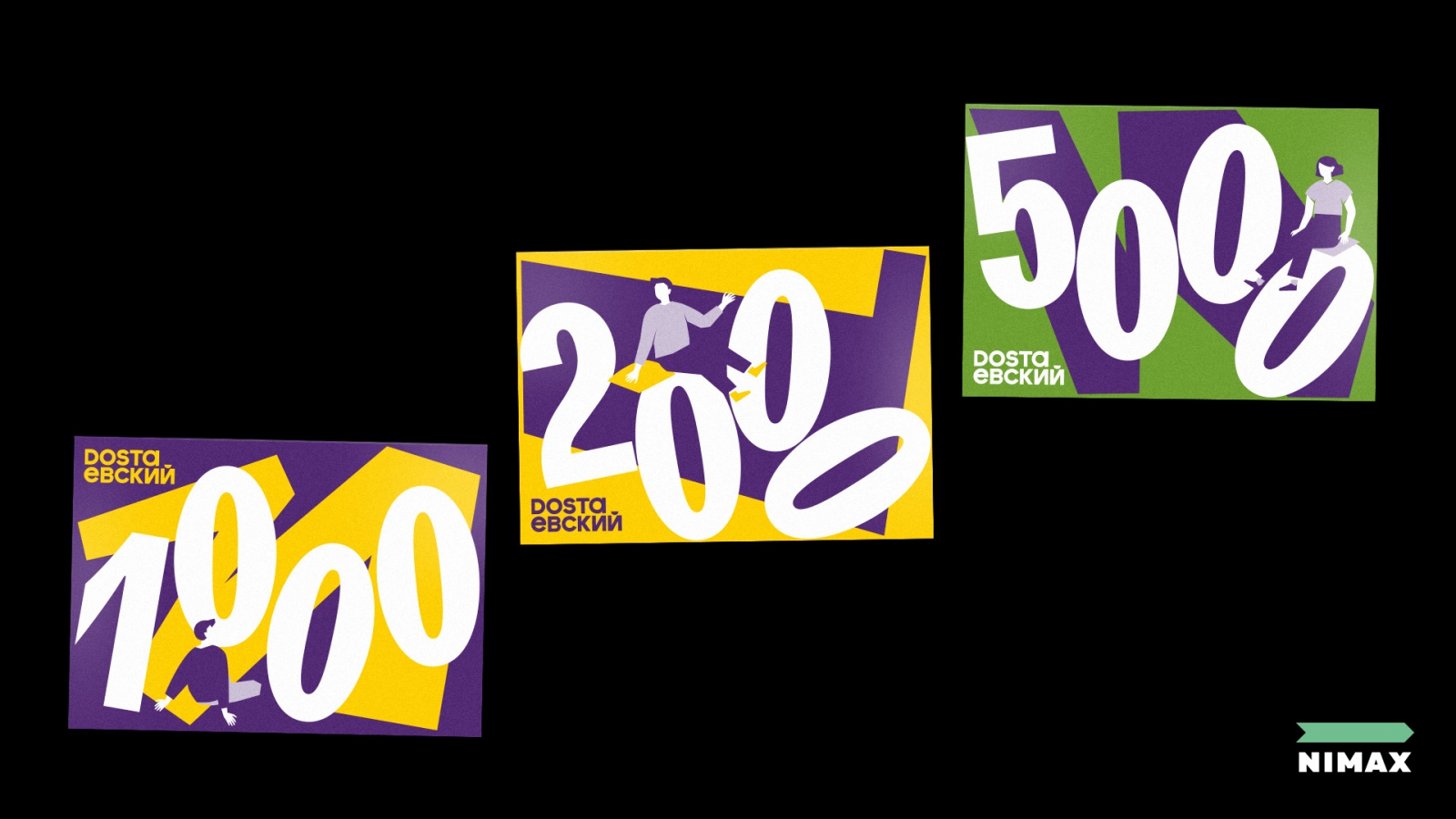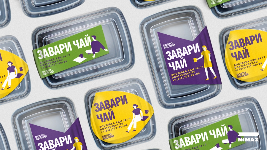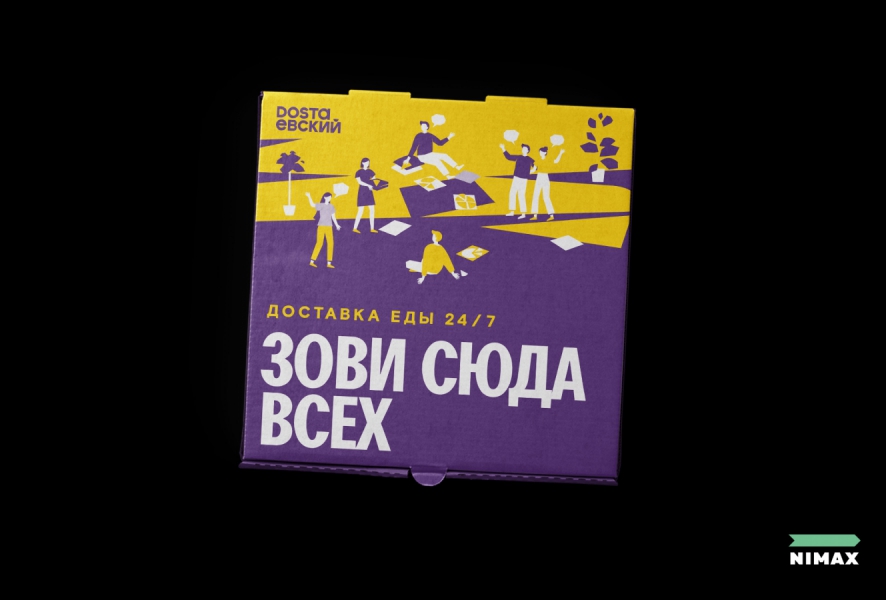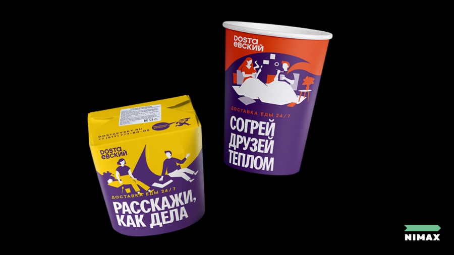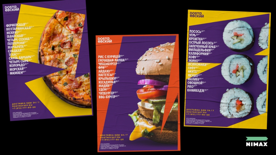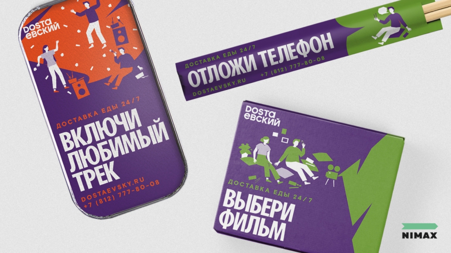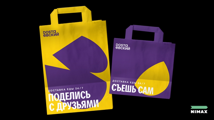 Nimax стояла задача запустить Dostaевский 3.0 для Dostaевский, круглосуточного сервиса доставки еды в Санкт-Петербурге и Москве — разработать новое позиционирование и обновить айдентику в соответствии с ним, уйти от хайпа и «мультяшности», но не потерять узнаваемость текущей визуальной идентификации, а также убрать диссонанс внутреннего и внешнего и разработать новую систему коммуникаций. На основе концепции клиент доработал фирменный стиль.