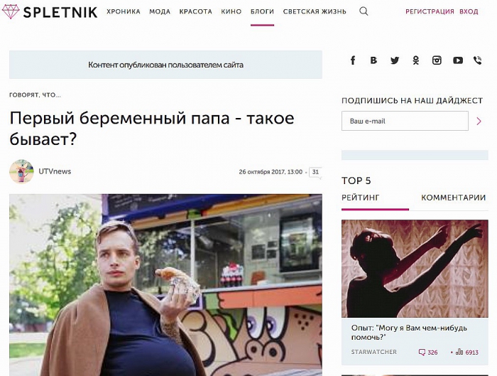 Евгений Гуцал, генеральный продюсер компании Divico Нам давно хотелось поработать в жанре Инстаграм-перфоманса, и вот вместе с каналом «Ю» мы смогли реализовать такой проект: завели аккаунт первого в мире беременного мужика. Реакция людей нас только подстегнула, и уже через две недели после старта мы выложили косплей знаменитых фотосессий. К тому моменту профиль нашего героя уже насчитывал пять тысяч подписчиков. Были большие опасения, что всю эту историю пользователи Инстаграма смогут неправильно понять, но к счастью, они не оправдались, и вовлечённость осталась очень большой – даже на постах с нативной рекламой канала «Ю».