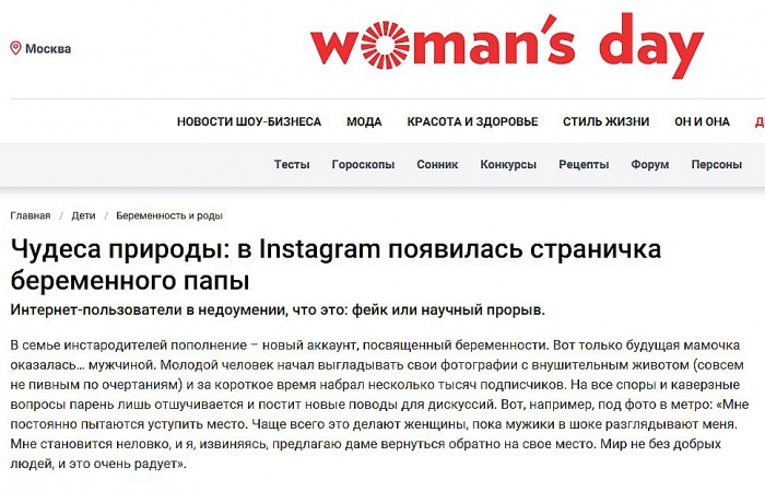 Инстаграм беременного мужчины привлек не только зрителей, но и заинтересовал популярные СМИ.