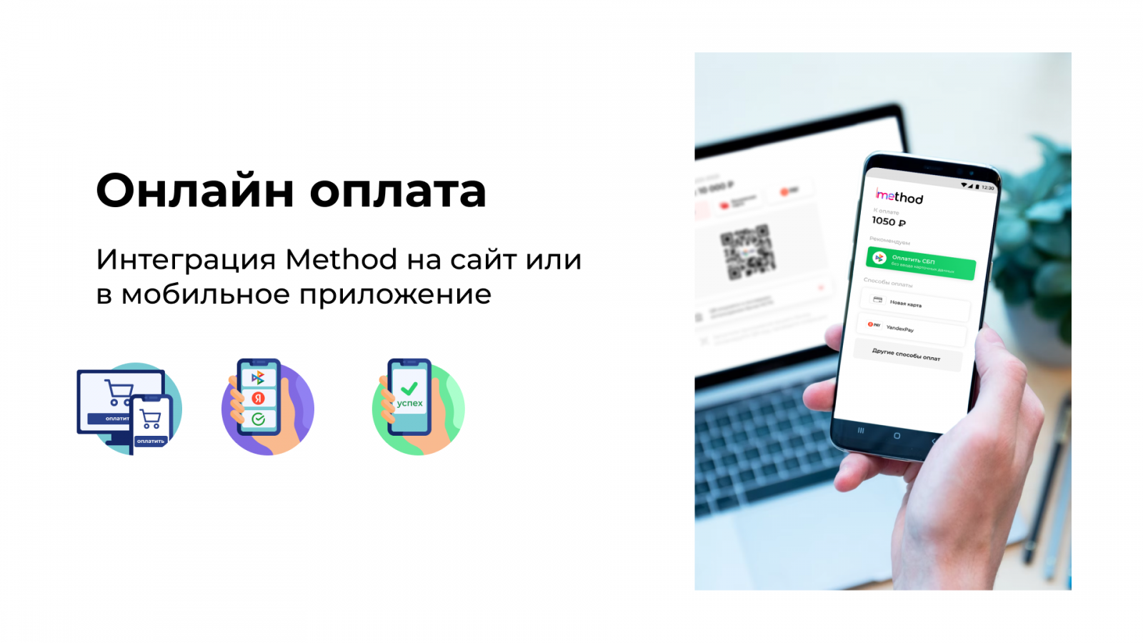 Method — это сервис для бизнеса, открывающий полный спектр возможностей проведения безналичных платежей онлайн и офлайн. Продукт представляет собой платёжную экосистему, которую можно интегрировать на сайт, в мобильное приложение или подключить в офлайн-магазинах, разместив метку с QR-кодом и NFC рядом с терминалом. Также есть возможность генерировать QR-код для оплаты через Telegram-бота от Method и принимать платежи в любой момент.
