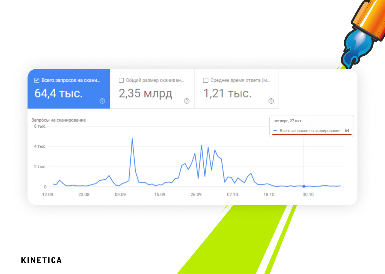 Низкий краулинговый бюджет — следствие истории предыдущего обхода домена. После редизайна часть страниц оставалась пустой и не содержала контента. Так, из-за пяти месяцев индексирования пустых страниц, поисковые системы снизили краулинговый бюджет сайта на обход HTML-документов в среднем до 50 запросов в сутки.