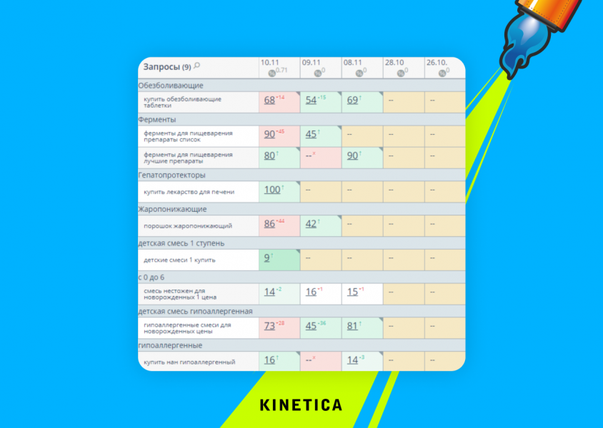 Внедрение скрипта для отправки страниц на индексацию позволило уже через несколько недель занять лидирующие позиции по некоторым кластерам интернет-аптеки.