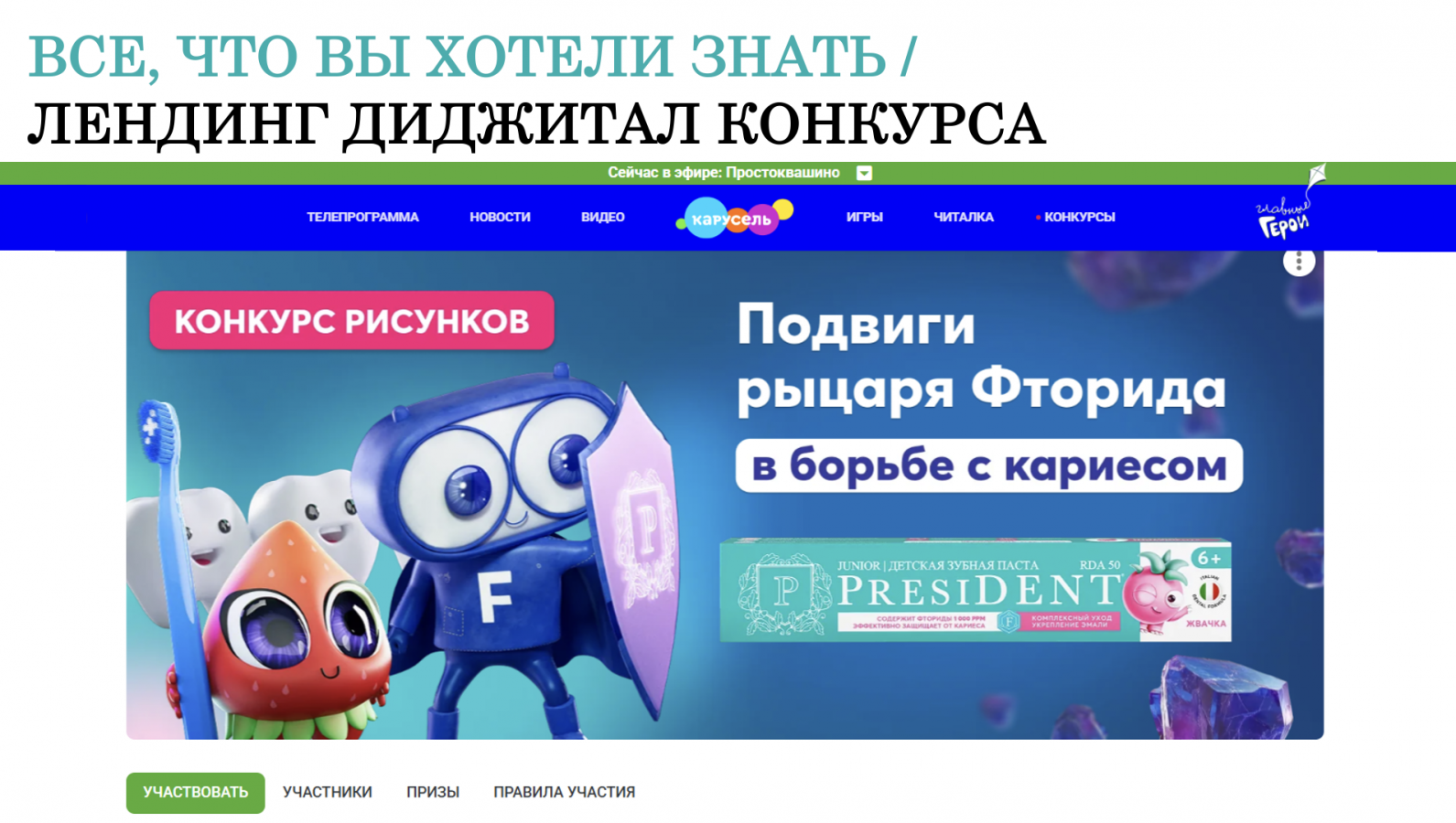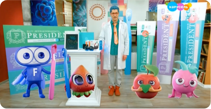 Детская паста PresiDENT это российский бренд, осознанно подходящий к расширению аудитории потребителей и рыночных позиций. Мы очень дорожим доверием родителей наших маленьких потребителей. И именно практическая реализация миссии в детских садах и школах помогает бренду напрямую проявлять заботу о здоровье детей. Благодаря возможностям канала «Карусель» и доверию к его программам бренду PresiDENT удалось усилить результат реализации своей миссии. Ключевым союзником в борьбе с детским кариесом для нас, безусловно, оказался канал «Карусель».