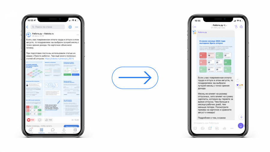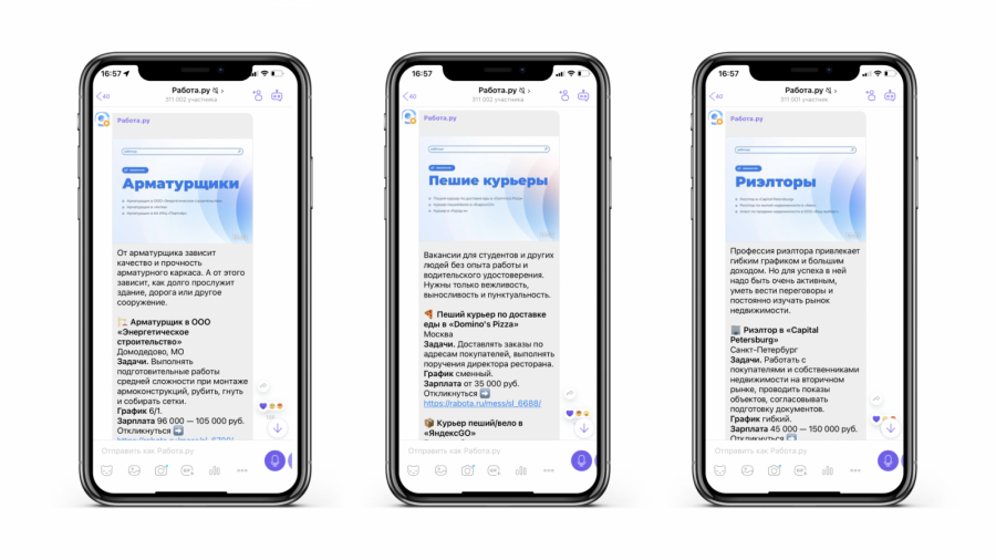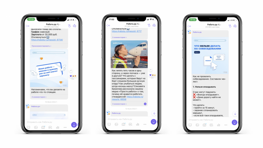 На тот момент у «Работа.ру» уже были SMM-каналы практически во всех соцсетях, однако самый простой кросс-постинг для нового канала не подходил: Viber не принимает форматы карточек, а паттерны потребления контента отличаются.