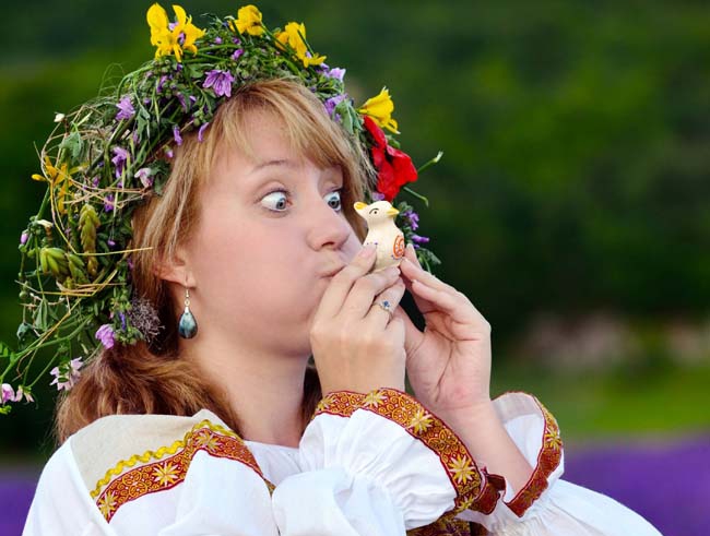 Стиль бренда: новое русское, народный промысел (глиняные свиристелки).