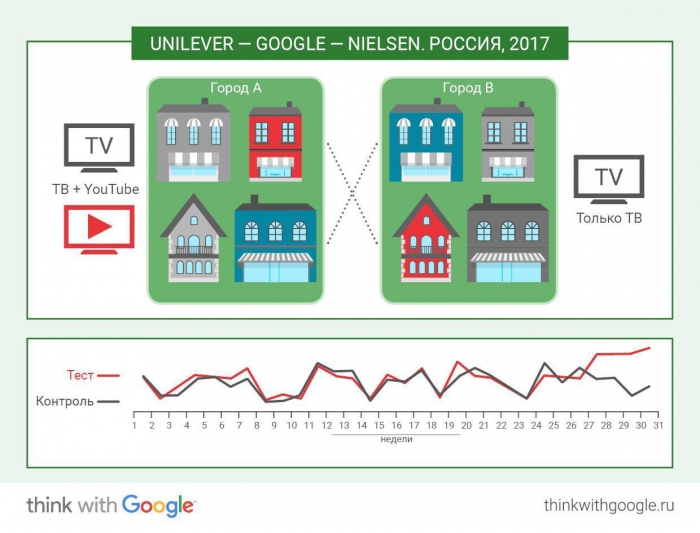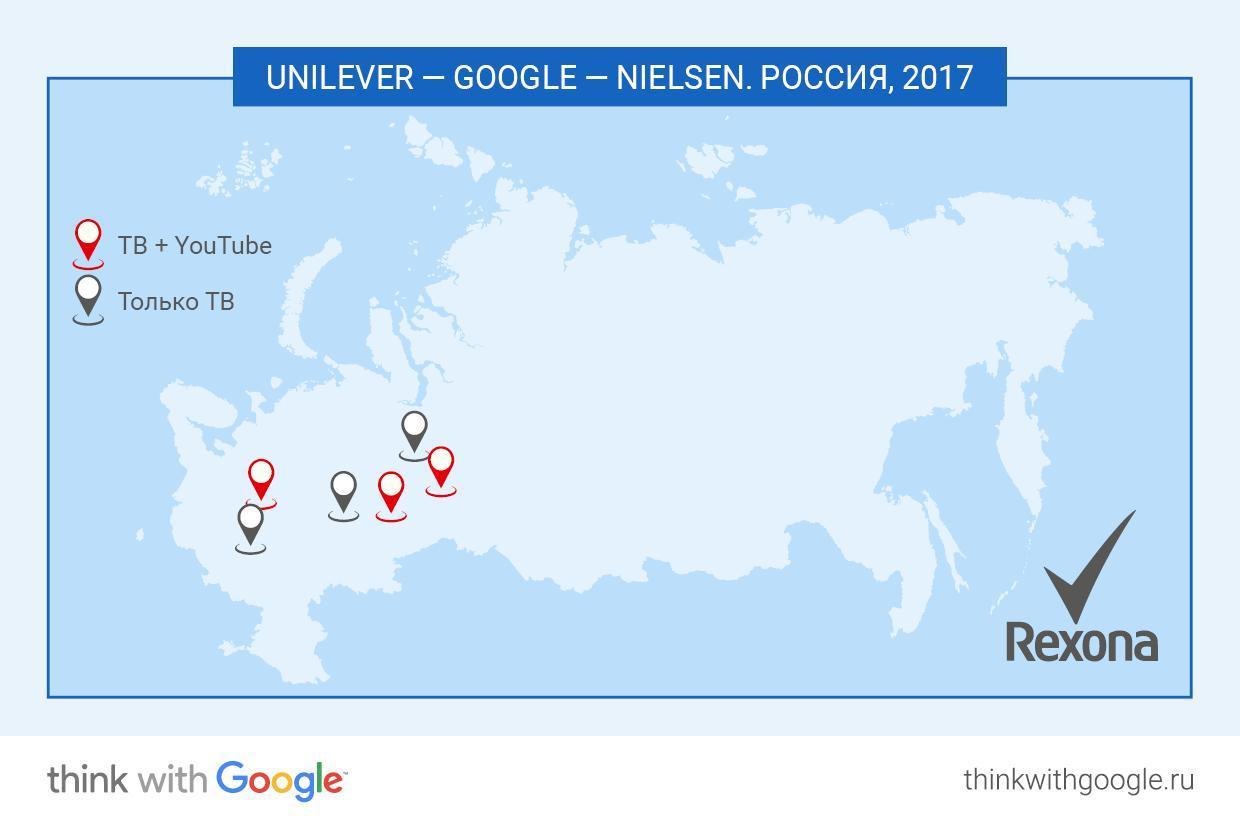 В первой группе реклама Rexona помимо телевидения размещалась на YouTube, во второй — реклама на ТВ была дополнена другими видами OLV, а в контрольной группе использовалась только телевизионная реклама.