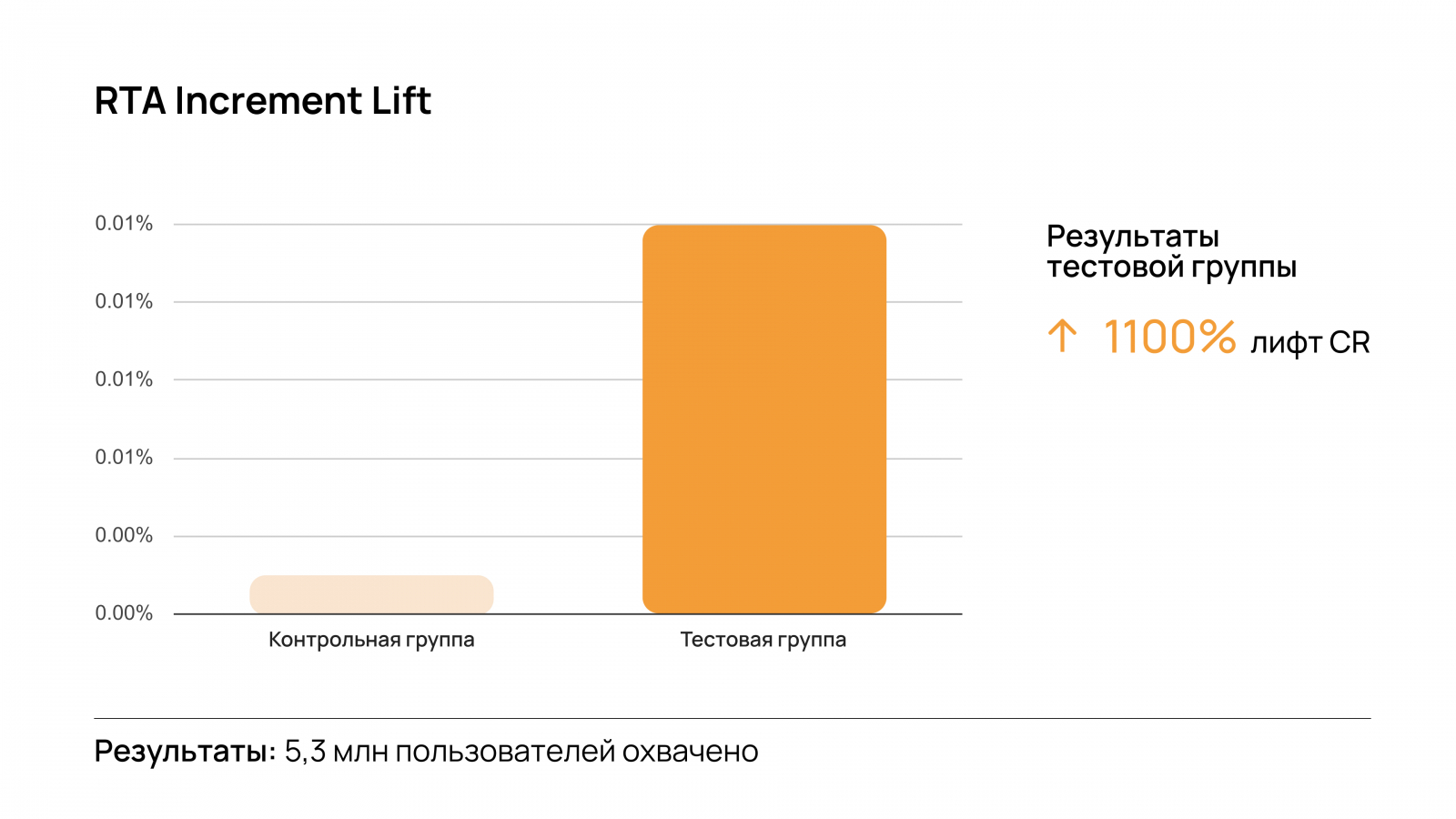Чтобы точно зафиксировать влияние медийного сообщения, а не просто факта контакта с рекламой, команда RTA использовала свой продукт RTA Increment Lift на платформе TargetAds.