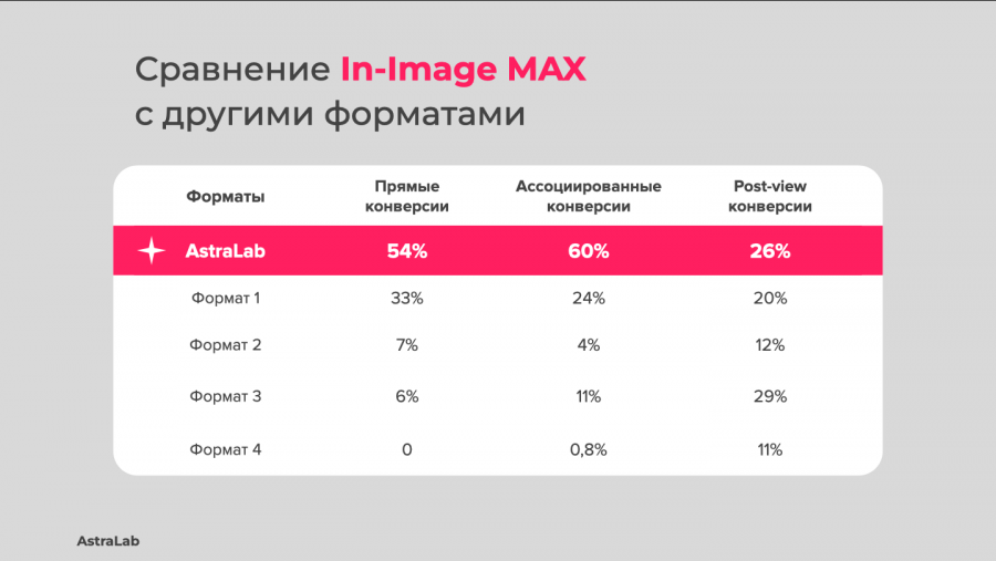 Формат In-Image усилен собственной системой компьютерного зрения AstraLab, которая считывает все объекты на фото и размещает рекламу бренда в релевантном для пользователя контенте, а также даёт на 100% безопасное окружение.