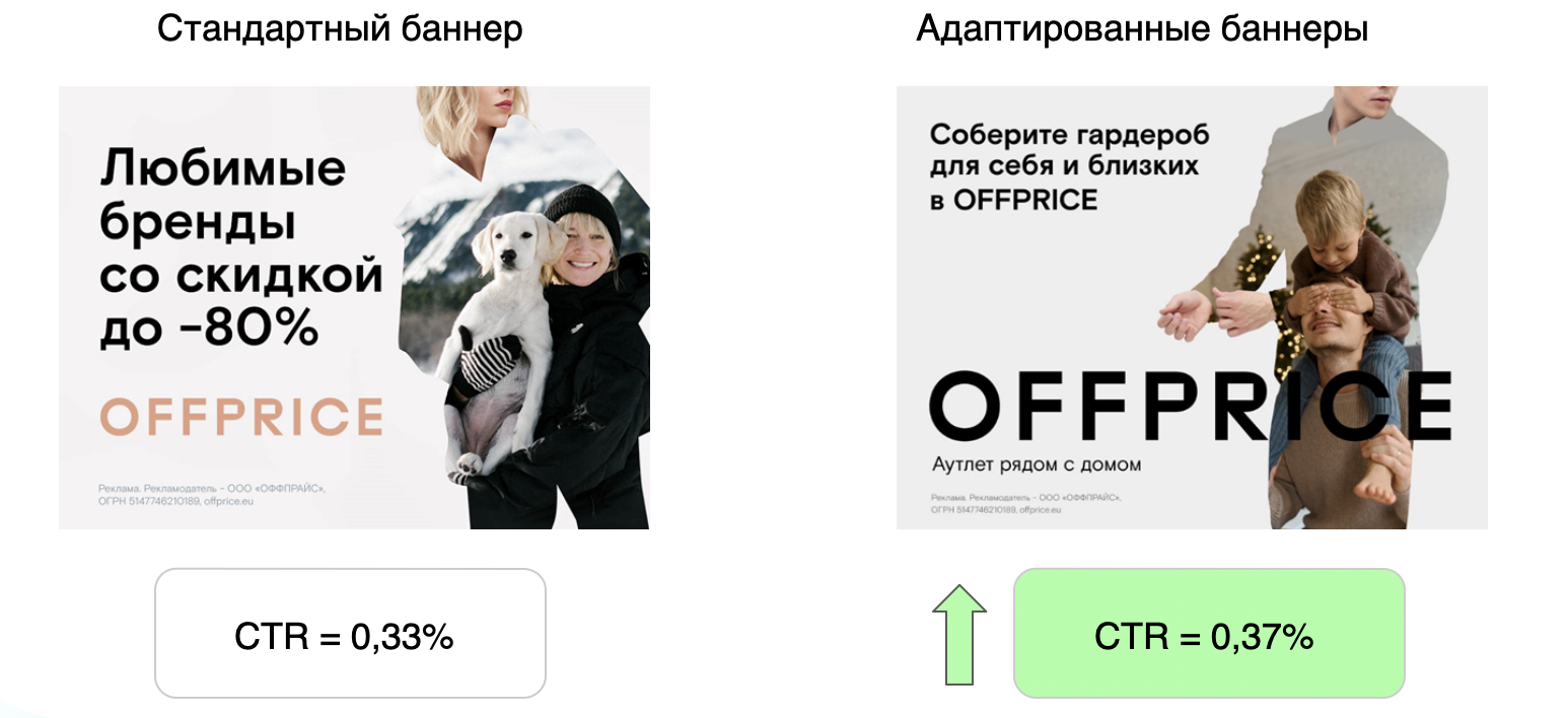 - Рекомендуем тестировать креативы и всегда находить пути измерения эффективности кампаний — со стандартными баннерами и с персонализированными. Это поможет улучшить результаты в будущем.