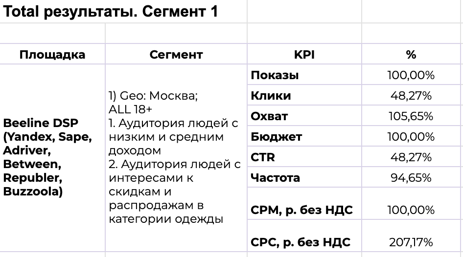 Далее проанализировали транзакционные показатели размещения в Beeline DSP.