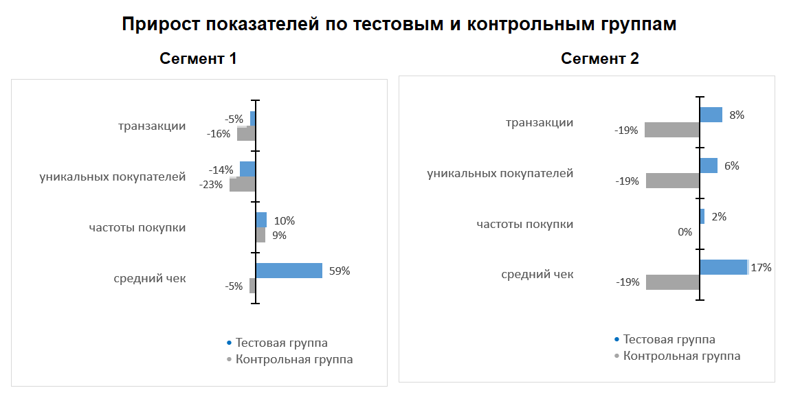 Затем «СберМаркетинг» провёл исследование Sales Uplift. Для этого сформированные сегменты поделили на две группы:
