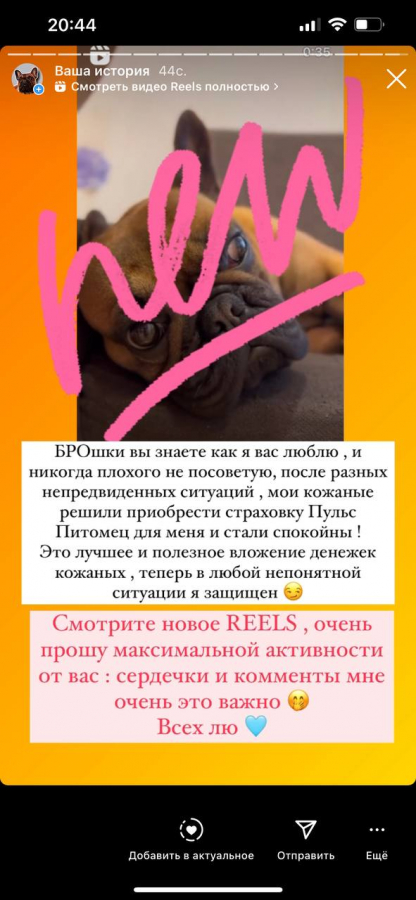 Лайфстайл-блогеры с питомцами интегрировали продукт в свои личные истории. Животные-блогеры рассказывали о продукте от первого лица через смешные видеоскетчи, а блогеры-эксперты делились советами по страхованию. Инфлюенсеры перечислили плюсы продукта: подписку, гибкую настройку полиса, онлайн-обслуживание и телеветеринарию.