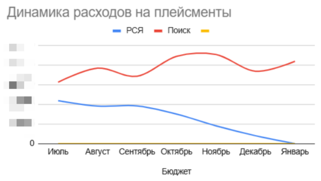 Выбор плейсментов напрямую зависит от сезона и определяется текущими бизнес-целями и задачами. За 1−1,5 месяца до сезона активно инвестировали в РСЯ, поскольку основная задача — повышение узнаваемости. На этом этапе основное внимание уделялось брендовым метрикам: % открытия статей, % дочитывания, стоимости дочитывания.