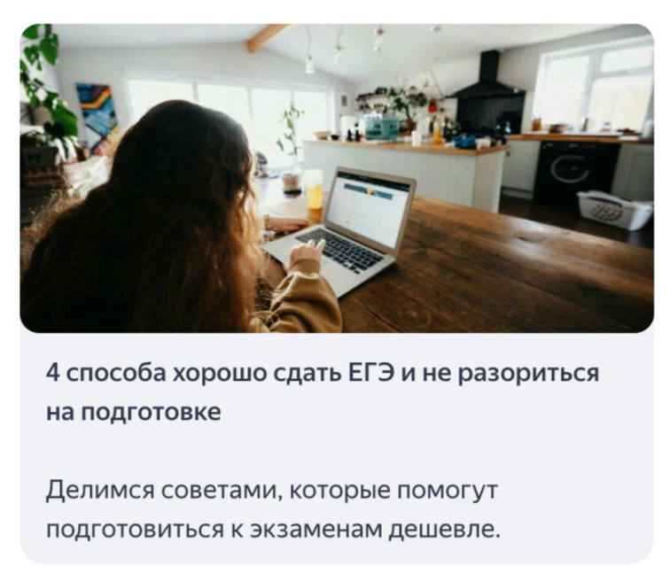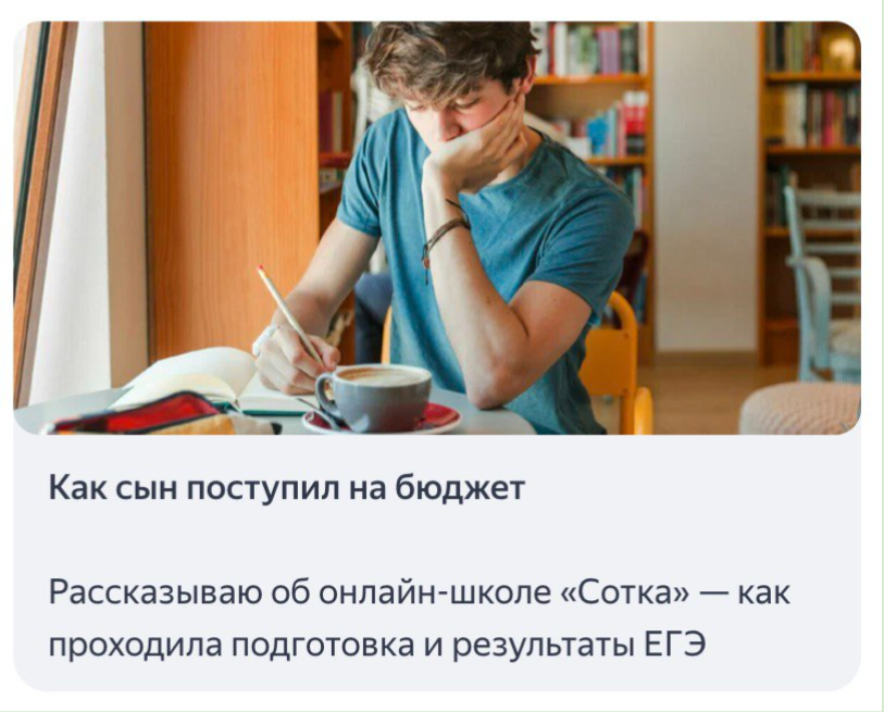 Мы тестировали 9 статей. Лучше всего отработали кейсы реальных пользователей, подборка лайфхаков, информационные статьи, например, «Сколько времени нужно на подготовку ЕГЭ».