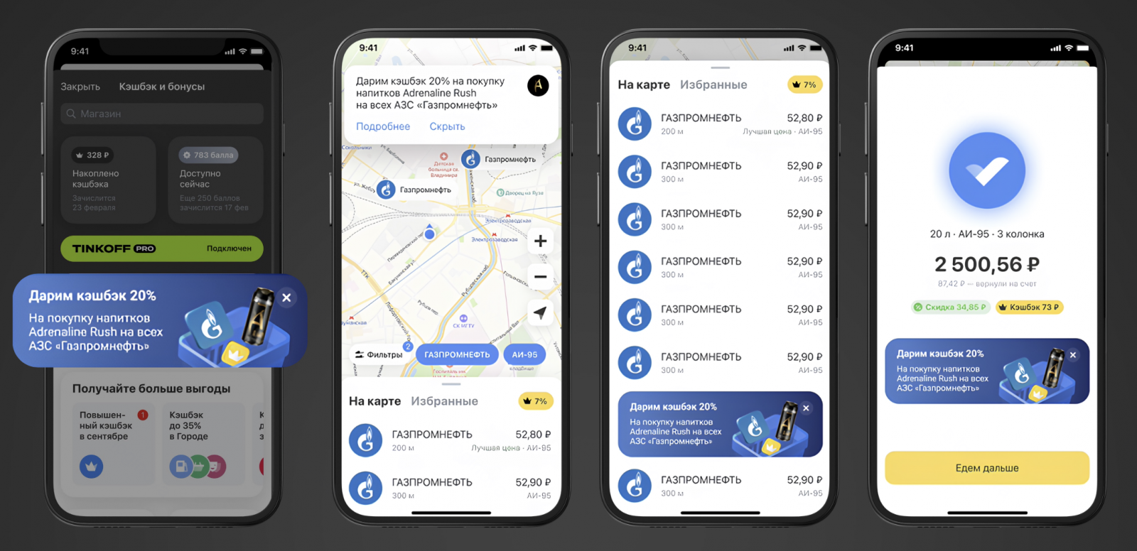 - Пересобрали и сам баннер в приложении, подчеркнув, что это персонализированное предложение для тех, кто платит за заправку онлайн, а не просто реклама.