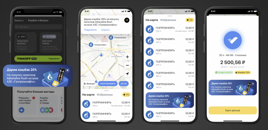 У сети АЗС появился еще один маркетинговый инструмент. Если раньше акции с партнером были завязаны на кэшбэк и дополнительные выгоды, то сейчас еще и на продажу дополнительных товаров, частоту посещения АЗС. Появилась возможность для новых экспериментов, например, можно предлагать кэшбэк на топливо при покупке кофе и, наоборот, кофе со скидкой при заправке. Сейчас каждый пятый клиент сети АЗС «Газпромнефть», из тех что пользуются приложением «Т-Банка», периодически покупает кофе.