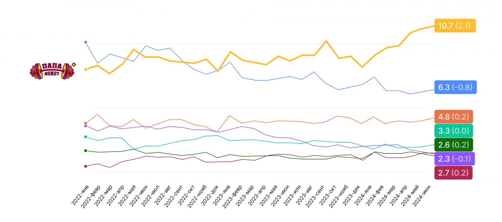 - продажи бренда «Папа Может» по сравнению с конкурентами выше при меньших инвестициях в рекламу.