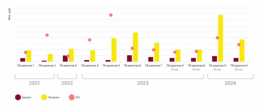 Среди рекламных каналов бренда один из самых высоких потенциалов у формата ОЛВ-Smart TV. Такой анализ позволяет оптимизировать медиамикс и получать максимальное количество продаж при оптимальных инвестициях.