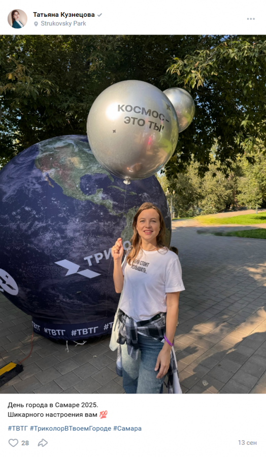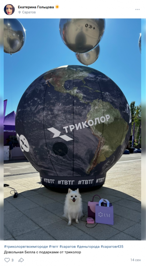 - UGC-компонент: посты гостей, репосты дилеров и активность внутри сообществ «Триколор» в соцсетях.