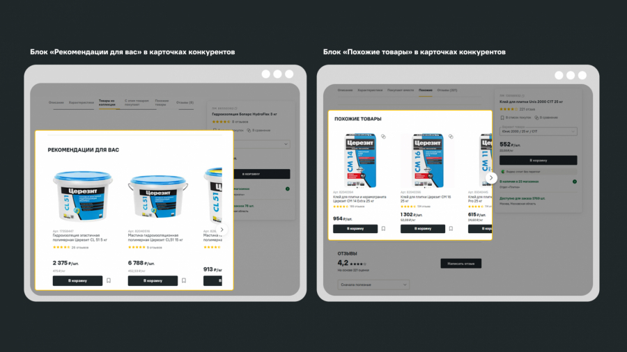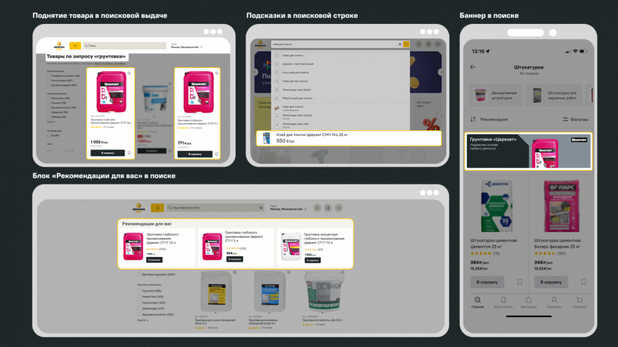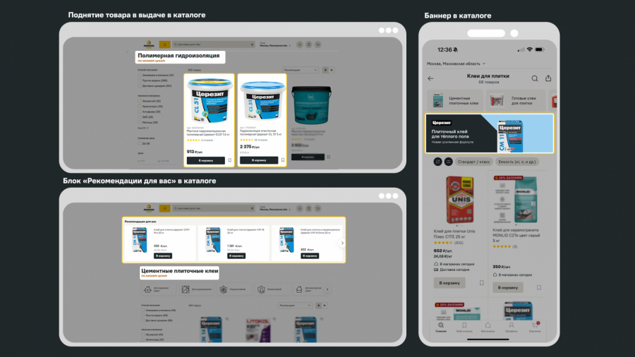 Блоки помогали напомнить о товарах бренда и переключить внимание покупателя с товаров конкурента на товары бренда «Церезит».