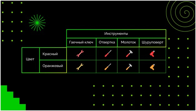 Изучили топ-100 товаров в приложении и определили самые популярные инструменты: гаечный ключ, отвёртка, молоток и шуруповерт. Получили восемь подходов — комбинации четырёх инструментов и двух контрастных цветов — красный и оранжевый.