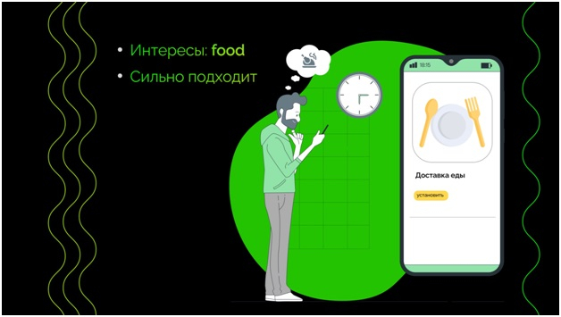 Алгоритм OEM-площадки собирает информацию об интересах пользователя по установленным на смартфон приложениям. Подбирает рекламу, которая может быть полезна.