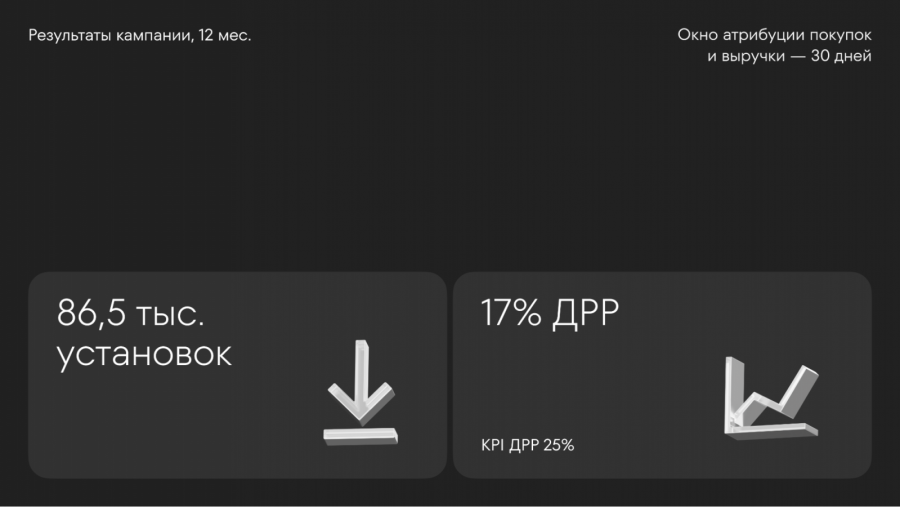 В ходе кампании нам удалось снизить целевой ДРР на 32%. В результате средний ДРР составил 17%, что, на наш взгляд, может служить хорошим бенчмарком для всего рынка.