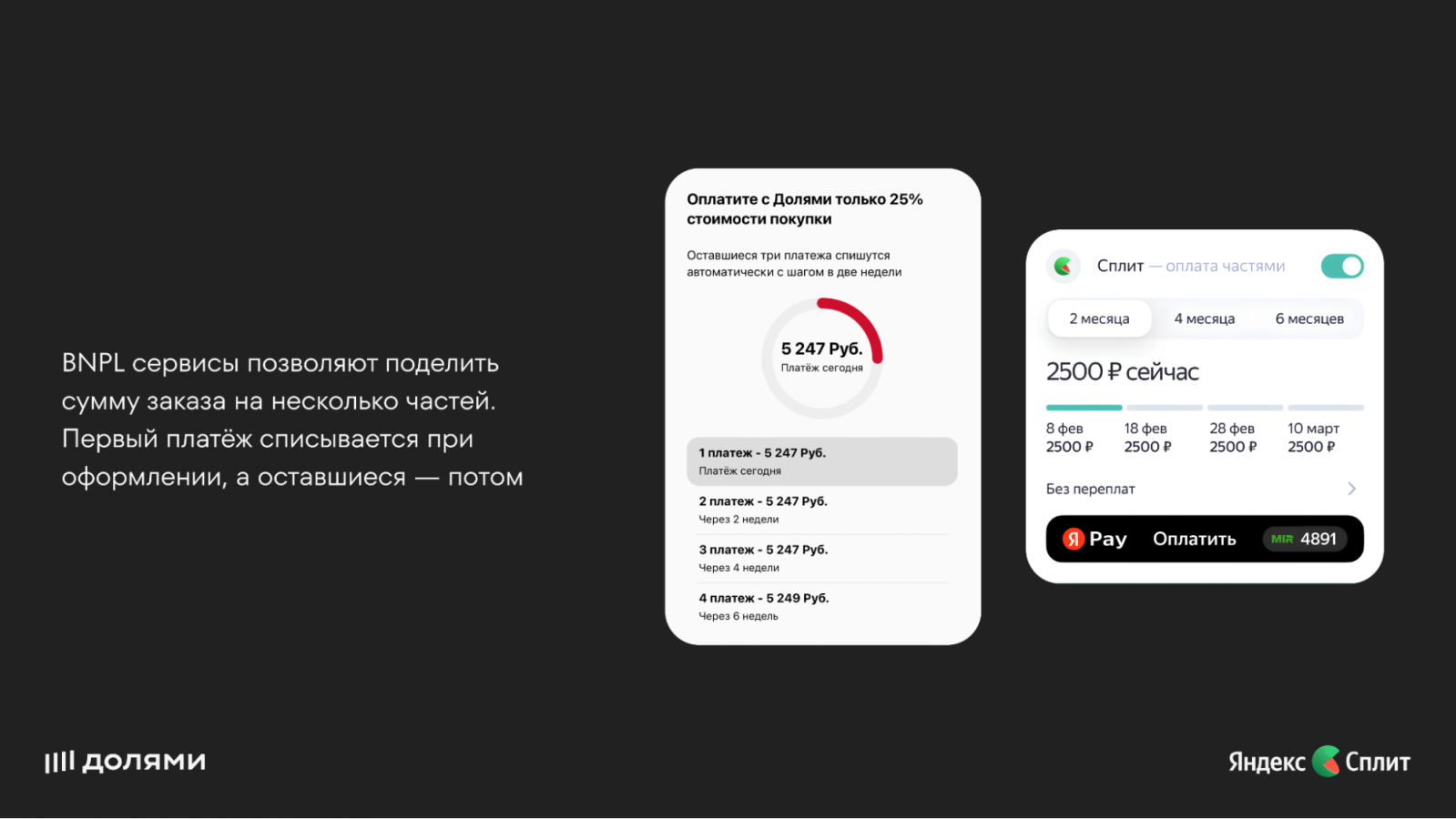 Покупатели предпочитают использовать BNPL, потому что это помогает контролировать и планировать расходы, не требует дополнительных затрат и позволяет купить товар, когда нет полной суммы. 80% пользователей, которые попробовали BNPL, совершают с его помощью повторные покупки.