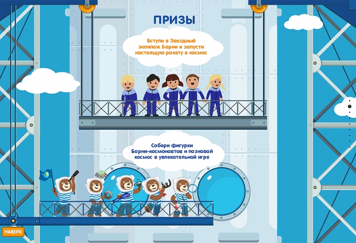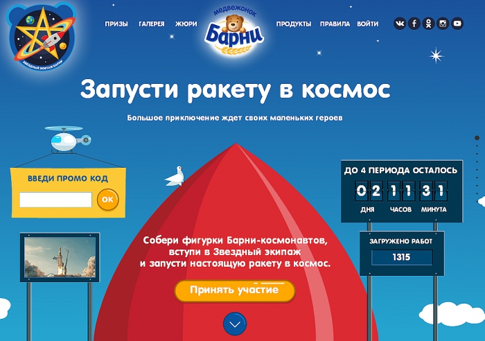 Коммуникационная кампания предполагает несколько этапов, каждый из которых был разработан специалистами креативных партнеров бренда. Кампания стартовала 2 мая и продлится до конца сентября. За это время у юных любителей космоса появится возможность принять участие в творческом конкурсе. Для этого требуется нарисовать ракету и загрузить ее на официальный сайт проекта Барни.рф.